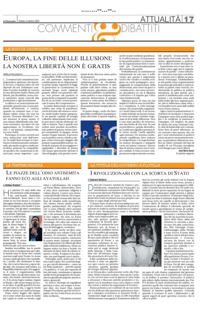 Actuar contra la polarización requerirá redescubrir y volver a comprometerse con virtudes como la legalidad y la veracidad, la paciencia y el compromiso. Y eso implica, de parte de quienes vienen llamados a hacerlo, dotes de liderazgo nada comunes. Celebro decir, en un medio como este, que, tanto por sus orientaciones en política exterior como por sus posiciones europeas, la presidenta Meloni me parece un ejemplo claro del tipo de líder que la Europa despierta necesitará para ser libre.