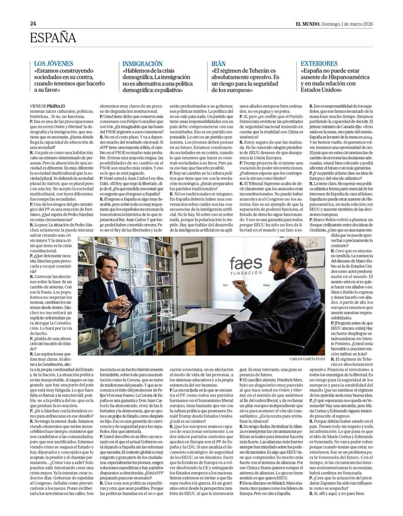 Lo hubo entonces y se produce ahora. Es un cambio de tendencia de carácter general en España. Del mismo modo que cuando en el 96 dije, recogiendo a Cánovas, «yo vengo a continuar la historia de España», ahora la coalición de saqueadores dice: «Nosotros queremos acabar con la continuidad de la historia de España». Europa ha cometido muchos errores y España también. Hemos perdido competitividad. Hemos practicado políticas climáticas erróneas que han hecho que las empresas se marchen. Hemos perdido una revolución tecnológica. Hemos descuidado nuestra seguridad. Lo que quiere la gente son respuestas positivas a eso. Busca referencias, elementos de futuro, y eso es lo que hace falta interpretar.