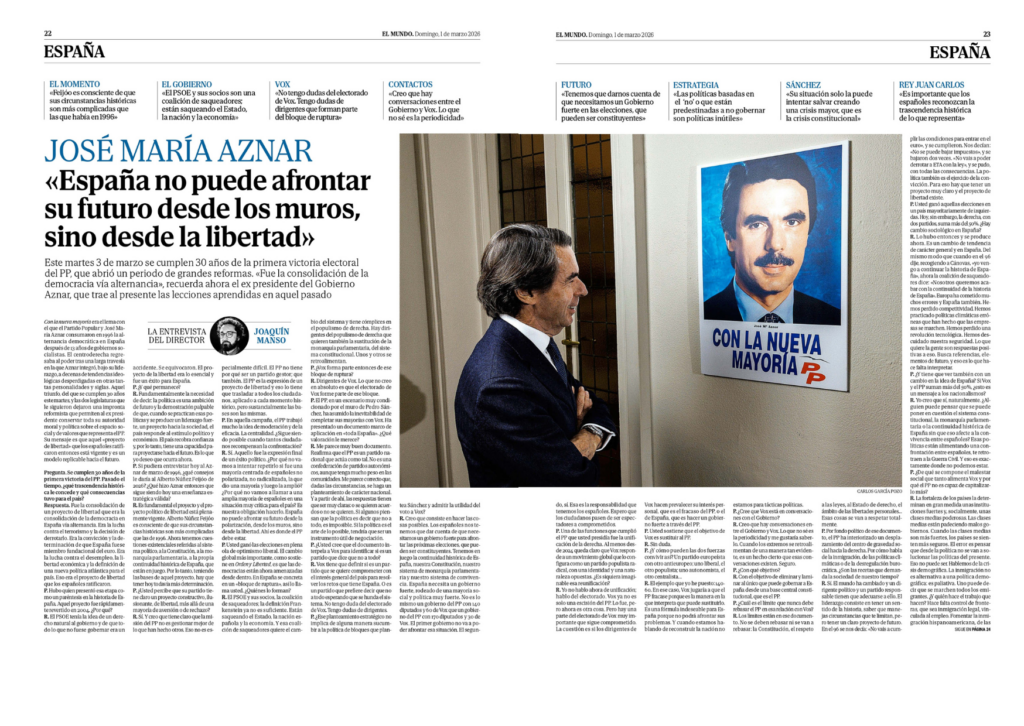 Es fundamental el proyecto y el proyecto político de libertad está plenamente vigente. Alberto Núñez Feijóo es consciente de que sus circunstancias históricas son más complicadas que las de 1996. Ahora tenemos cuestiones existenciales referidas al sistema político, a la Constitución, a la monarquía parlamentaria, a la propia continuidad histórica de España, que están en juego. Por lo tanto, teniendo las bases de aquel proyecto, hay que tener hoy todavía más determinación.