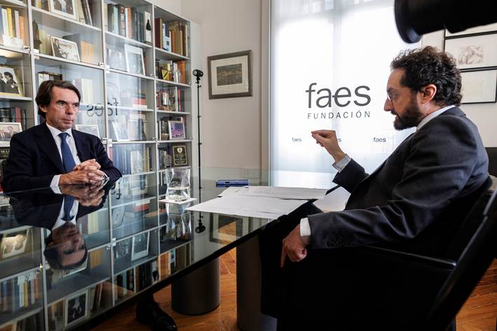 El ex presidente Aznar y el director de EL MUNDO, Joaquín Manso, durante la entrevistaCARLOS GARCÍA POZO
