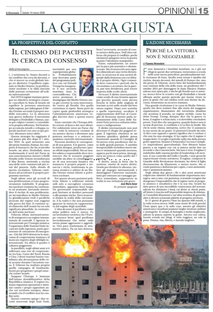 Artículo en ‘Il Giornale’ | Il cinismo dei pacifisti in cerca di consenso